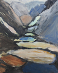 Schilderen raakt mijn ziel en lokt die. Hij (of zij?)kan zich manifesteren door verf in vorm, kleur, beweging. En de ziel wil zich graag laten zien. Voor mij is altijd beleving het voertuig. Ik ben niet persé bezig met vorm of kleur maar met beleving. ‘Toelaten’ en ‘Meestromen’ zijn belangrijke woorden.