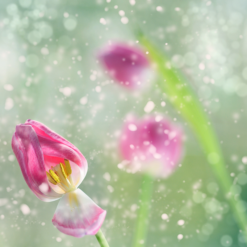 Dubbelzinnigheid Fotografie Lifeware Tulpen Bloemen Natuur Lente Voorjaar Winter Sneeuw Bokeh