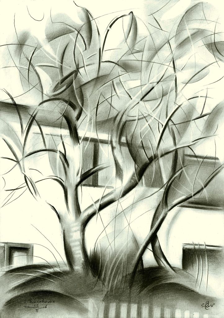 Landschap Tekening Dutch Landscape Drawing Kubisme Kubistisch Akkers Pencil Cubism Zuid-holland Corne Rondisme Roundism Cubistic