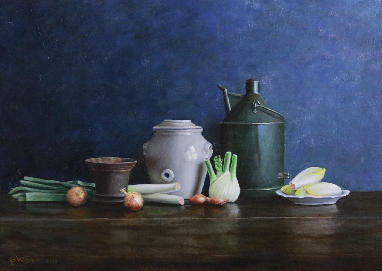 Schilderij Realistisch Painting Stilleven Vissers Realistic Kunstschilder Witlof Uiten Prei Bertvissers