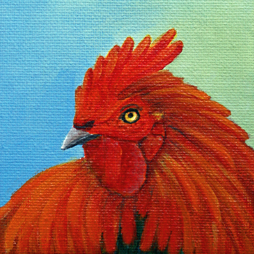 Schilderij Vogel Wildlife Art Painting Bird Haan Rooster Miniatuur Dierenkunst Vogelschilderij