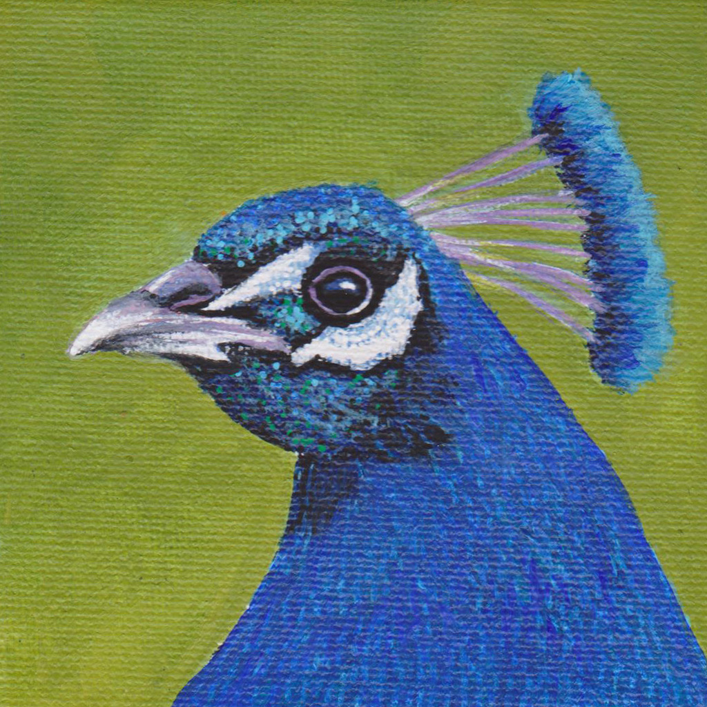 Schilderij Acryl Vogel Wildlife Art Painting Acrylic Bird Pauw Miniatuur Peacock Miniature