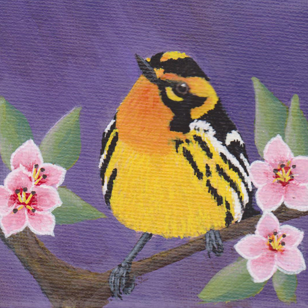 Schilderij Acryl Vogel Wildlife Painting Acrylic Bird Miniatuur Warbler Miniature Sparrenzanger Blackburnian