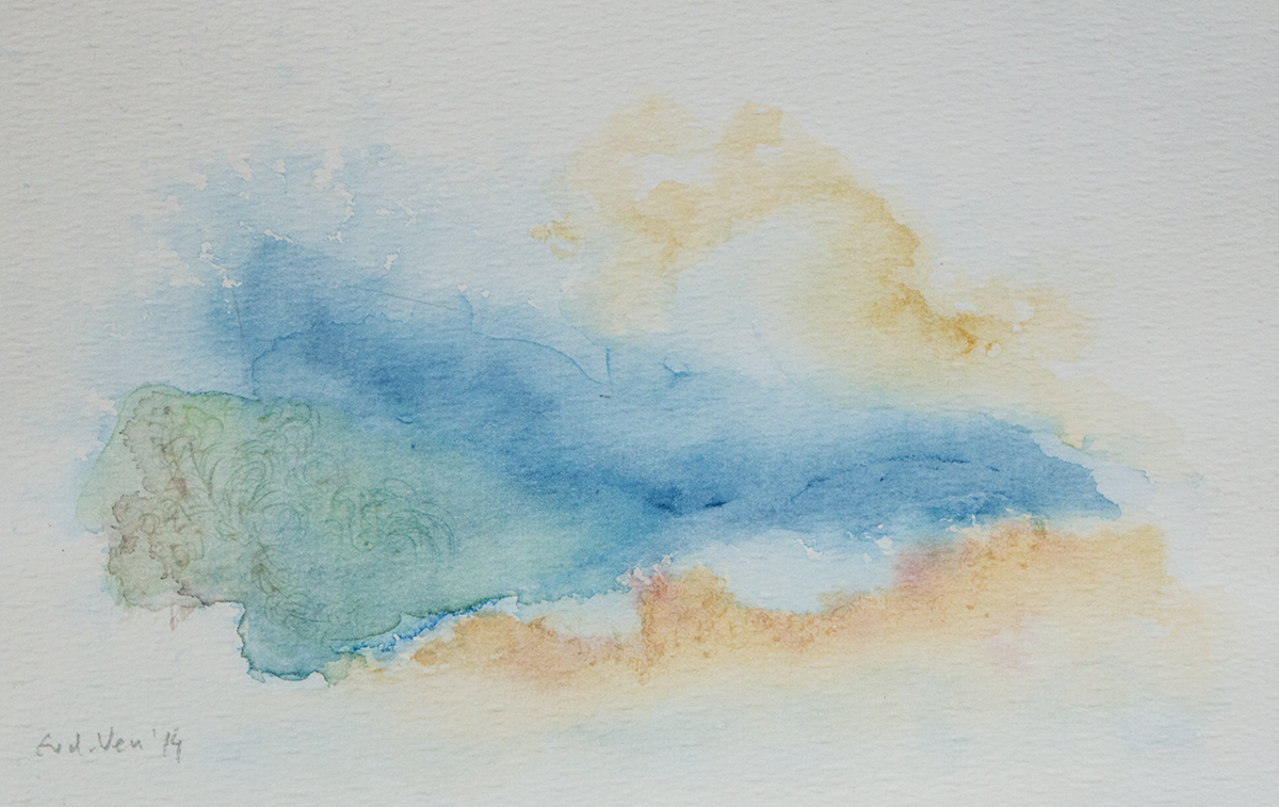 Schilderijen als wandelingen in een fictief landschap: natuurelementen die op elkaar inspelen, al dan niet met menselijke ingrepen.