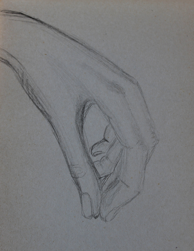Schets van mijn hand met potlood