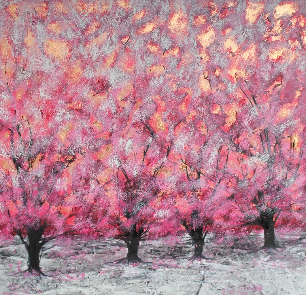 Bloesembomen I op gepoedercoat aluminium. Binnen- en buitenschilderij