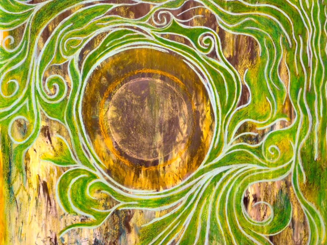 cirkel met krijt en acryl op papier