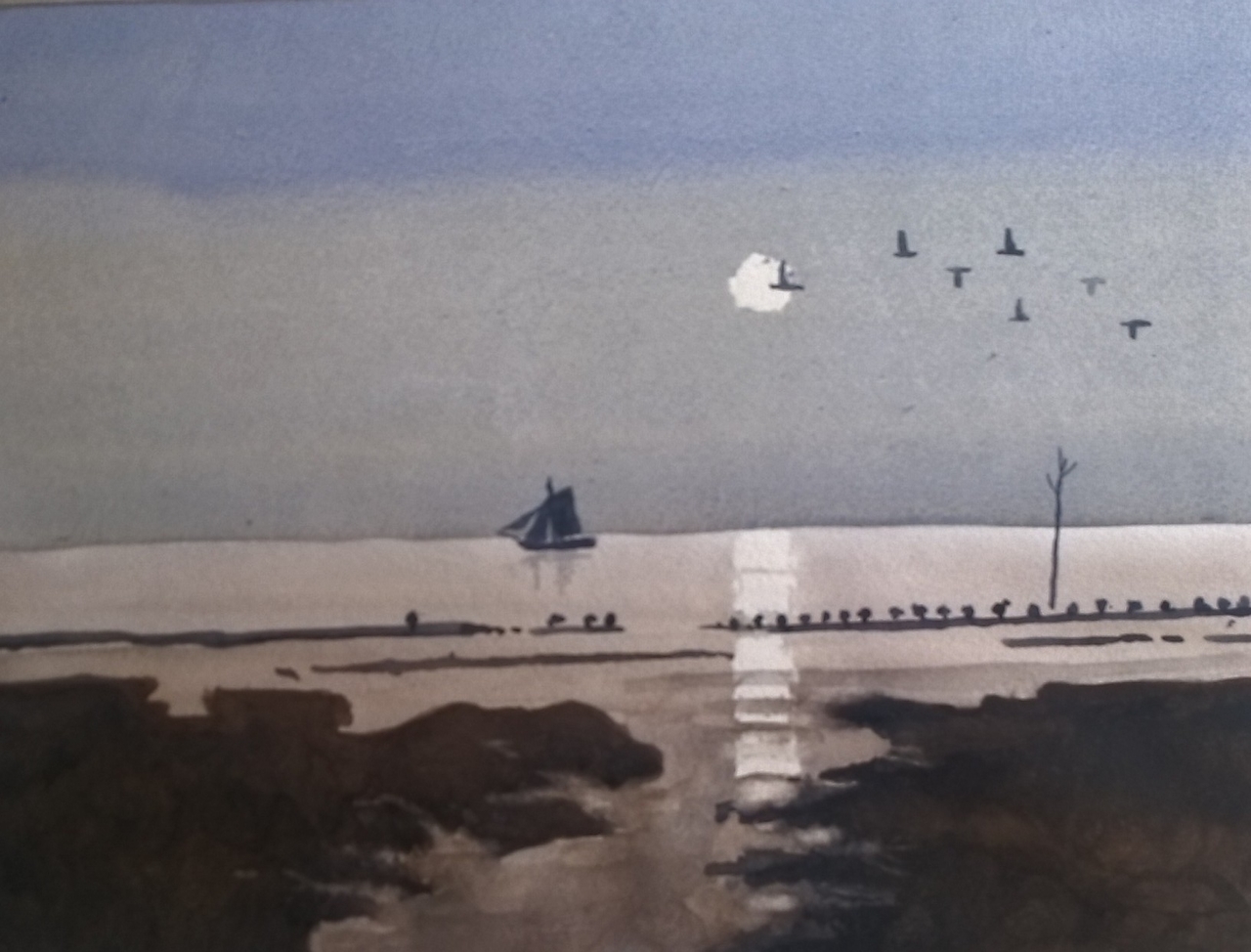 Strand Aquarel Wadden Avond Henk Wad Klipper Siepel