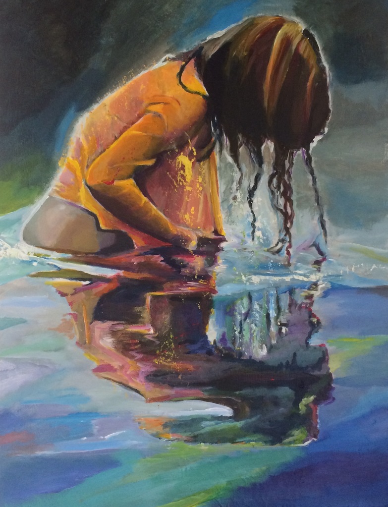 Acryl Water Weerspiegeling Haar Kleur Shirt Nat Terugblik Abrikot