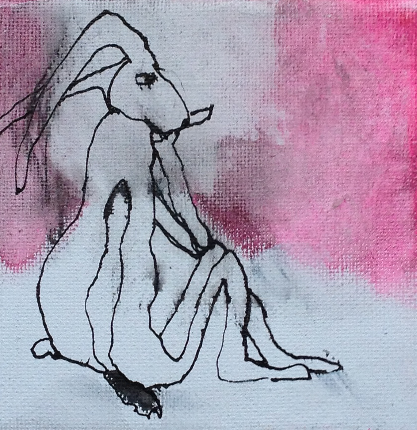 OI-inkt, houtskool, acrylverf 10 x 10 cm