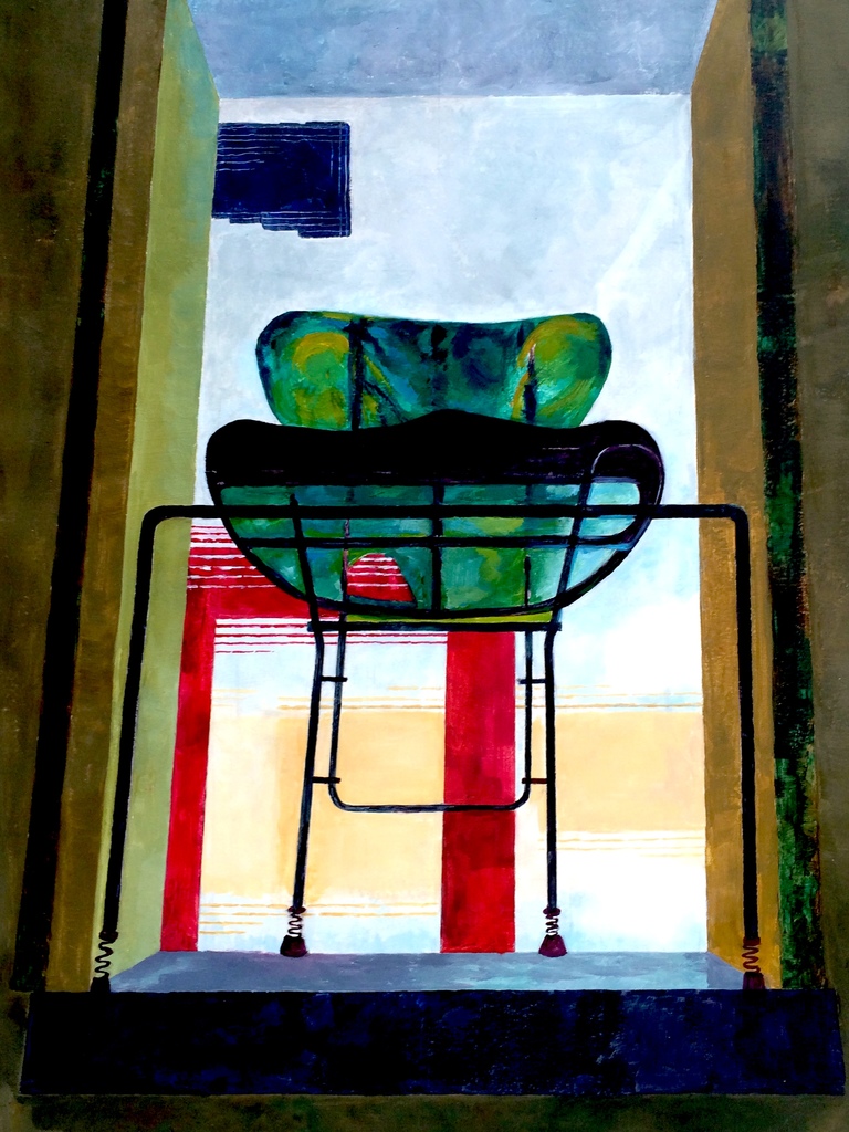 Rood Blauw Groen Bruin Blue Stoel Oil Olieverf Red Green Brown Gat Hole Chair Vensterbank Seat Zitting Windowsill