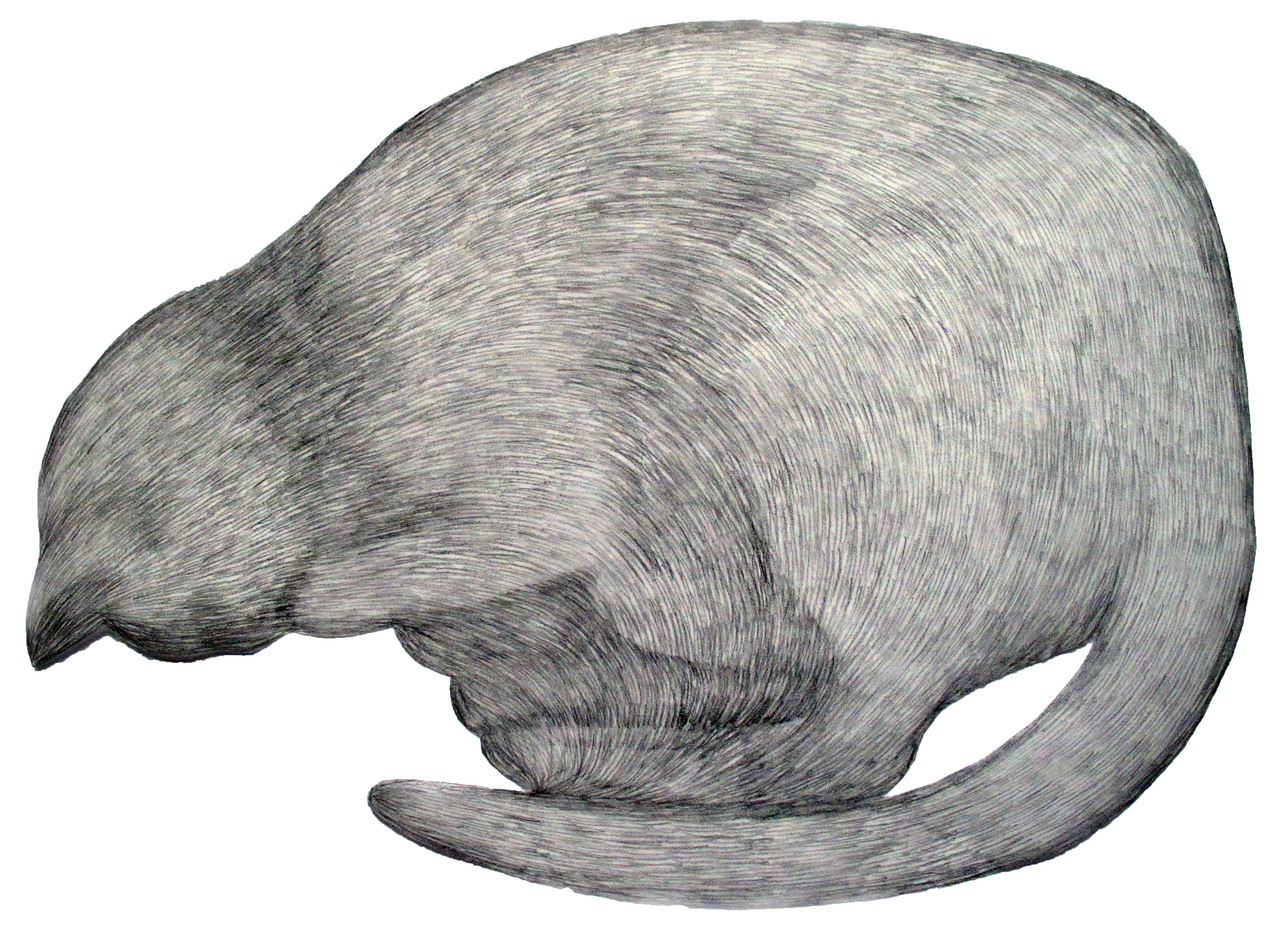 Tekening van een slapende poes in wart-wit