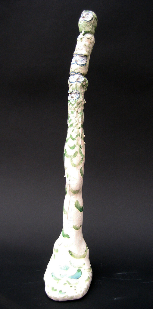 Gegoten sculptuur vanuit zelfgemaakte mallen. Samengestelde vorm. Gietklei, onderglazuurpotloden en glazuur.