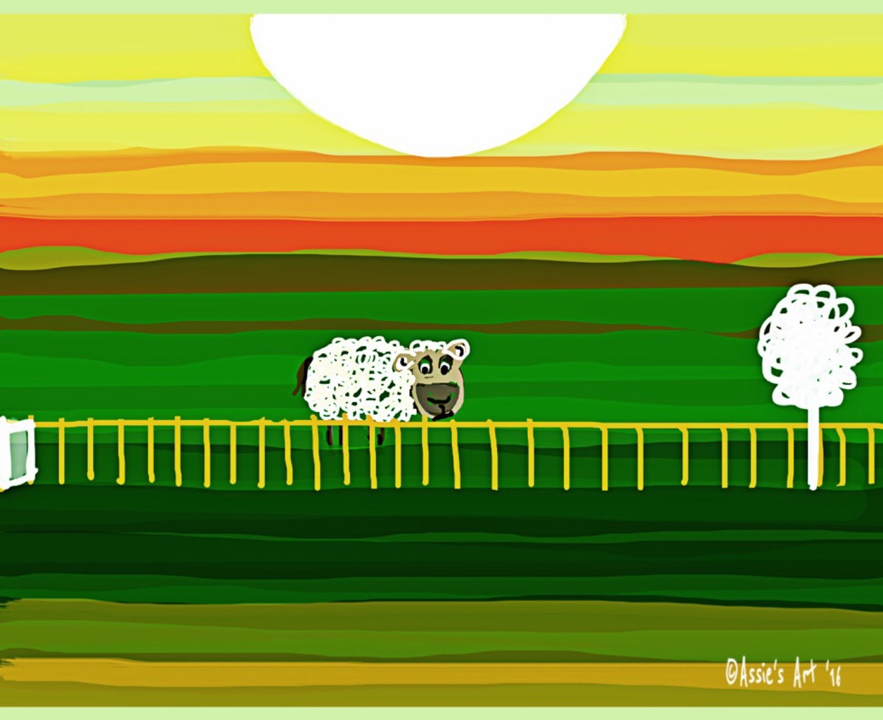 Geel Yellow Groen Dieren Art Kleurrijk Kunst Natuur Green Vrolijk Design Zomer Schaap Grappig Summer Kaarten Funny Kunstkaarten Artdesign Ansichtkaarten Greetingcards