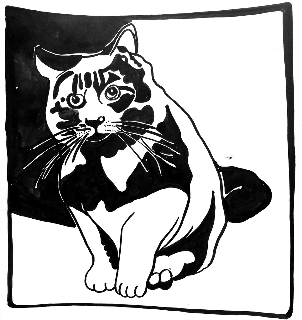 Inkt Kater Mons Tekening Zwart Gestileerd Ink Drawing Black