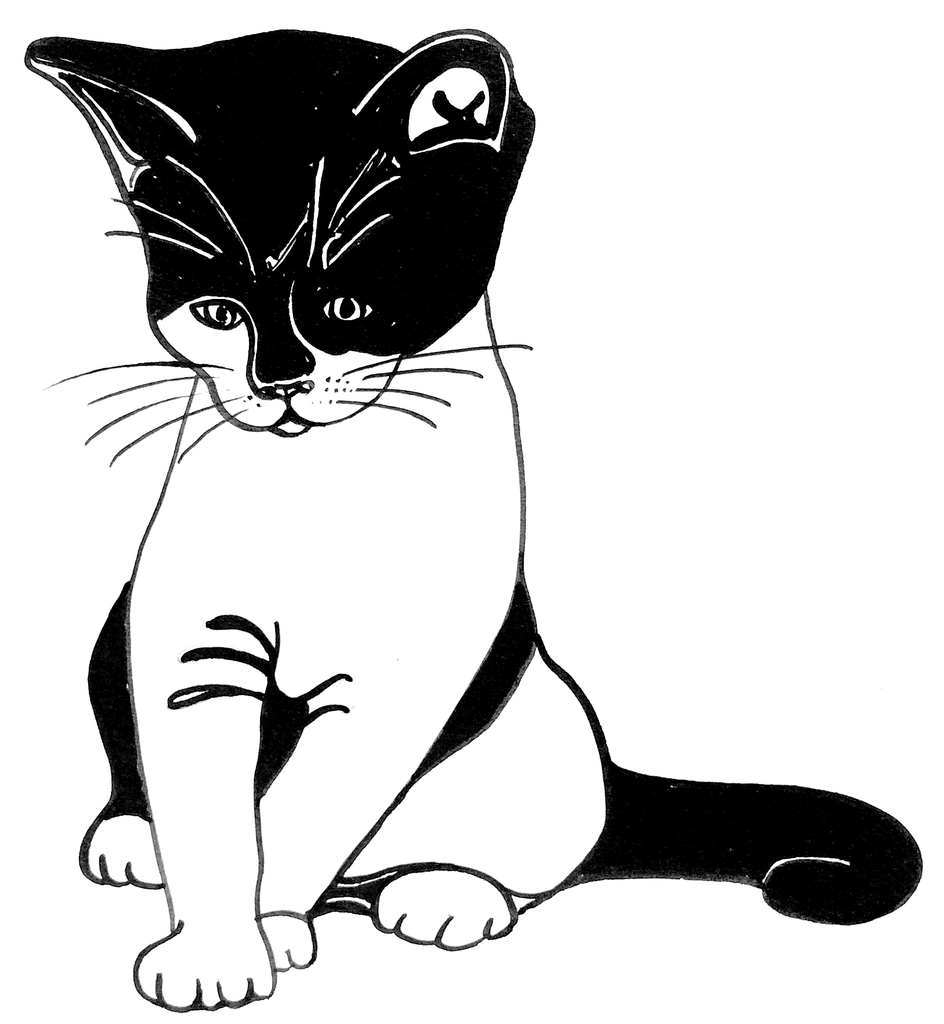 Wit Zwart Kitten Mia Inkt Tekening Black White Inkdrawing