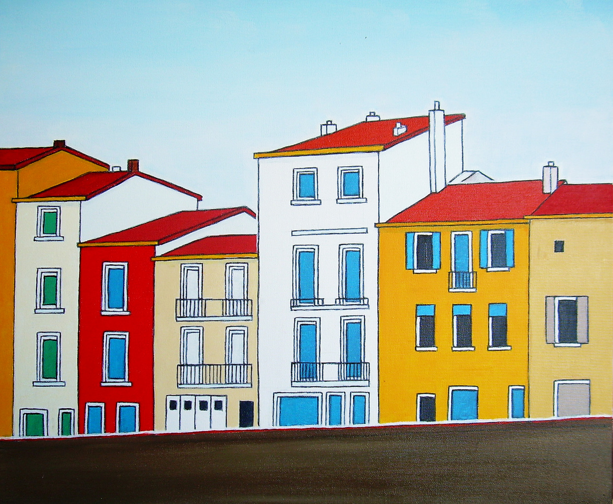 Mijn schilderijen bestaan uit gebouwen en mensen.