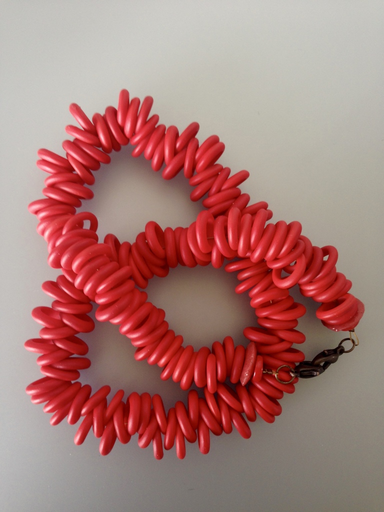Prachtig opvallend rood collier. De kralen zijn van glas. Op mijn webste zijn ook oorbellen bij te bestellen.