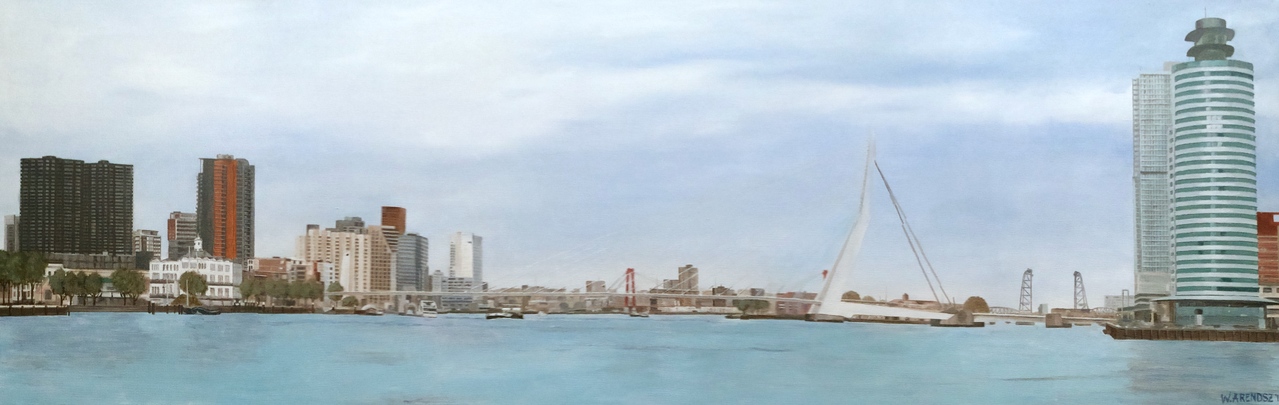 Panorama van Rotterdam met de drie stadsbruggen en De Kop van Zuid