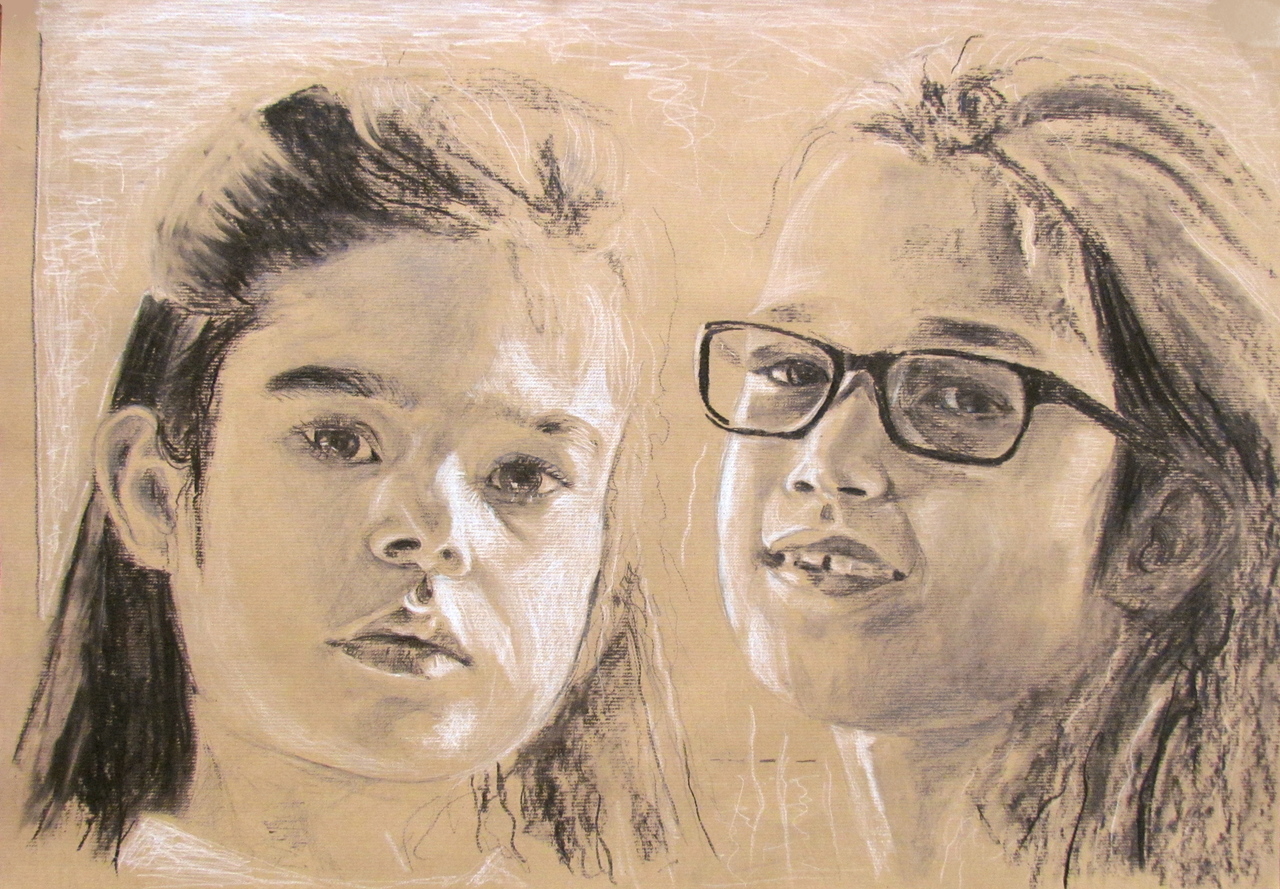 Houtskool Grafiet Conte Krijt Zusjes Meisjes Charcoal Grafit Kraftpapier Kraftpaper Sisters Girls