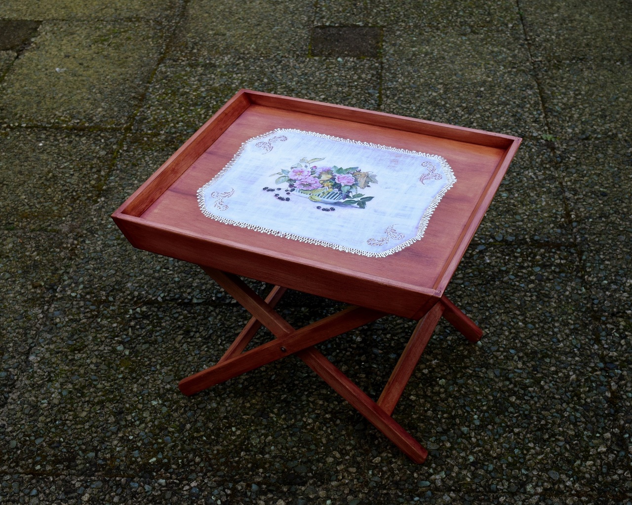 Houten dienblad op poten handgeschilderd met acryl en gelakt met glanzend vernis. Afmetingen: 39 x 49 x 5 cm. Slechts één stuk gemaakt. Het wordt geleverd met een certificaat van echtheid.