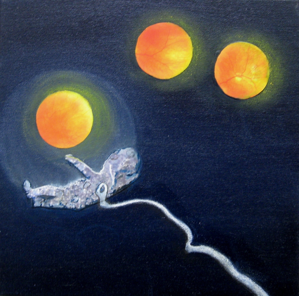 In de schilderijen van Heleen Makkinga is haar fascinatie te zien voor de wereld van de microscoop en de telescoop.Deze geheimzinnige en verborgen wereld zoekt zij op in haar werk.