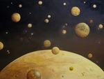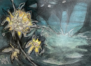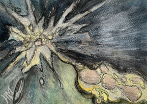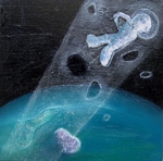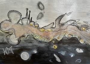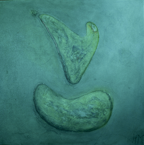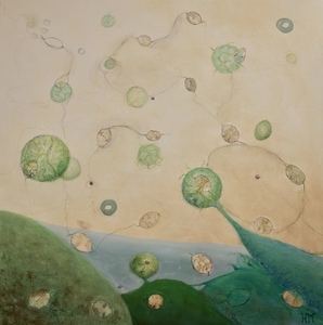 In de schilderijen van Heleen Makkinga is haar fascinatie te zien voor de wereld van de microscoop en de telescoop.Deze geheimzinnige en verborgen wereld zoekt zij op in haar werk.