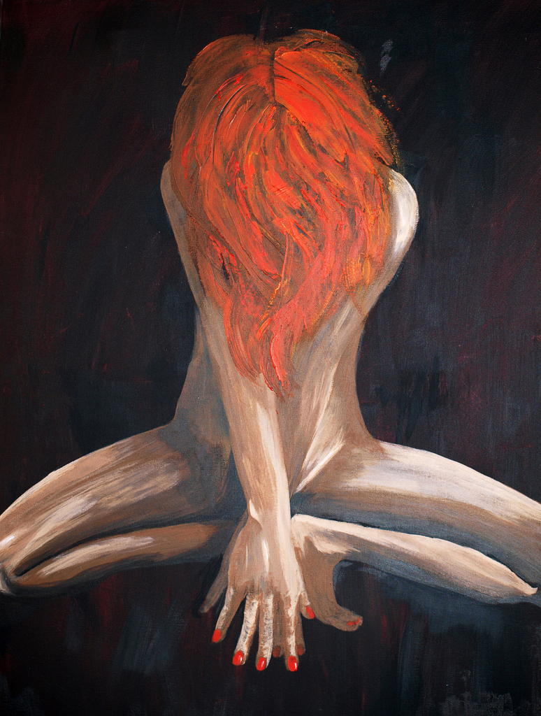 Acryl op canvas, in baklijst. Geinspireerd op een cover van "Huid" een magazine van een patientenvereniging