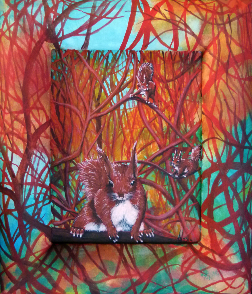 Figuratief Acryl Kleur Eekhoorntjes Dieren Oranje Bos Landschap