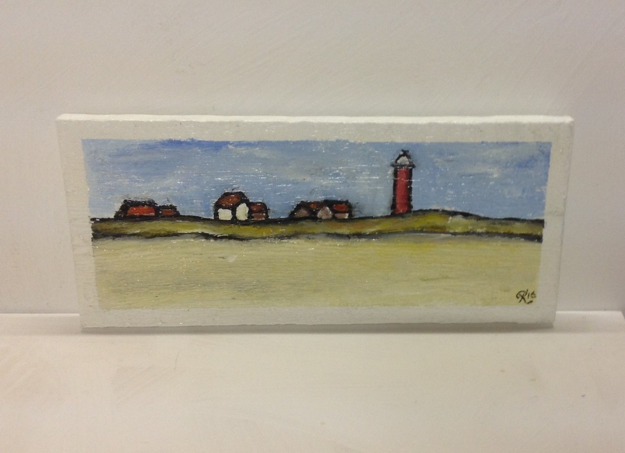 Geborgenheid onder de vuurtoren. Schildering op hout. 18 x 40 x 2 cm. VERKOCHT.