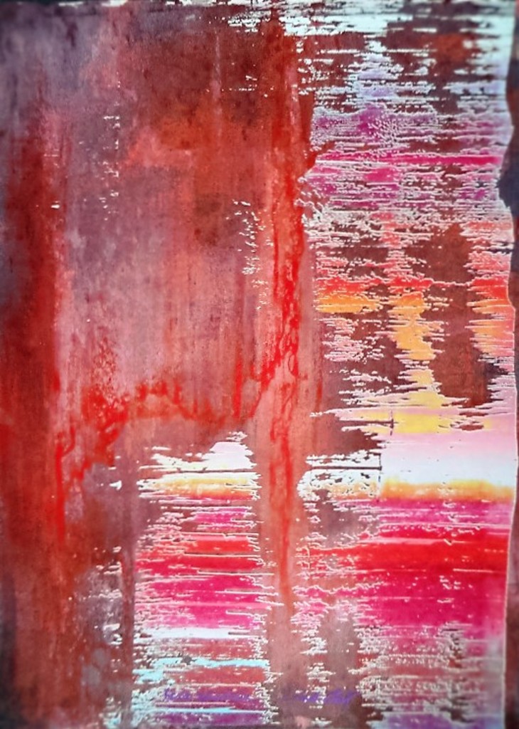 Abstract Rood Oranje Geel Yellow Paars Papier Lagen Red Roze Lichtblauw Purple Inkt Paper Pink Orange Fuchsia Zeefdruk Cadillac Ink Spuitbus Screenprint Oudroze Crash Layers