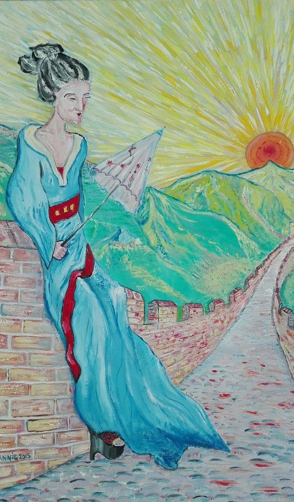 Chinese Muur Had Er Afbeelding Dat Maakte Zon Vrouw Op Een De Ik Bij Lente Gevoel Het