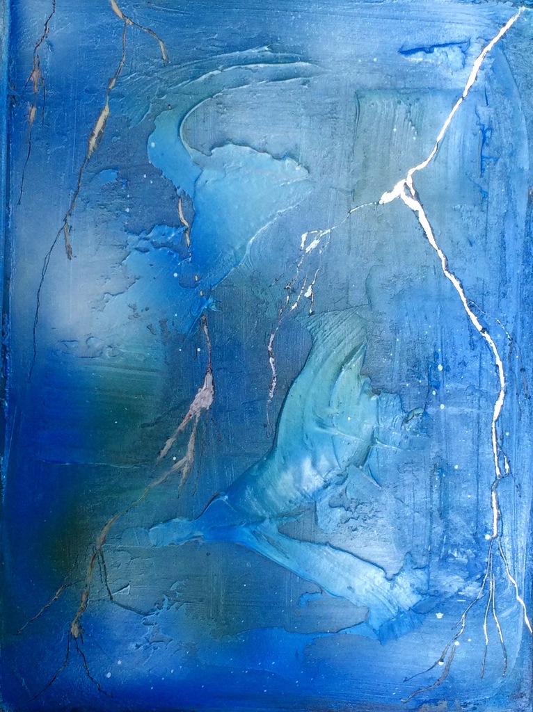Schilderij op spiegel geschilderd Om het effect van de Cracks te versterken.. There is a crack in everything,thats how the light gets in (Leonard Cohen)