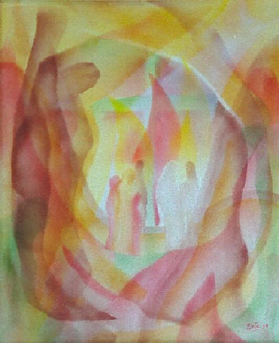 Beelden en schilderijen. Beelden voor binnen en buiten, voornamelijk in steen. Meestal abstract, vaak symbolisch. Schilderijen in de frescotechniek. Kleurrijk en helder.