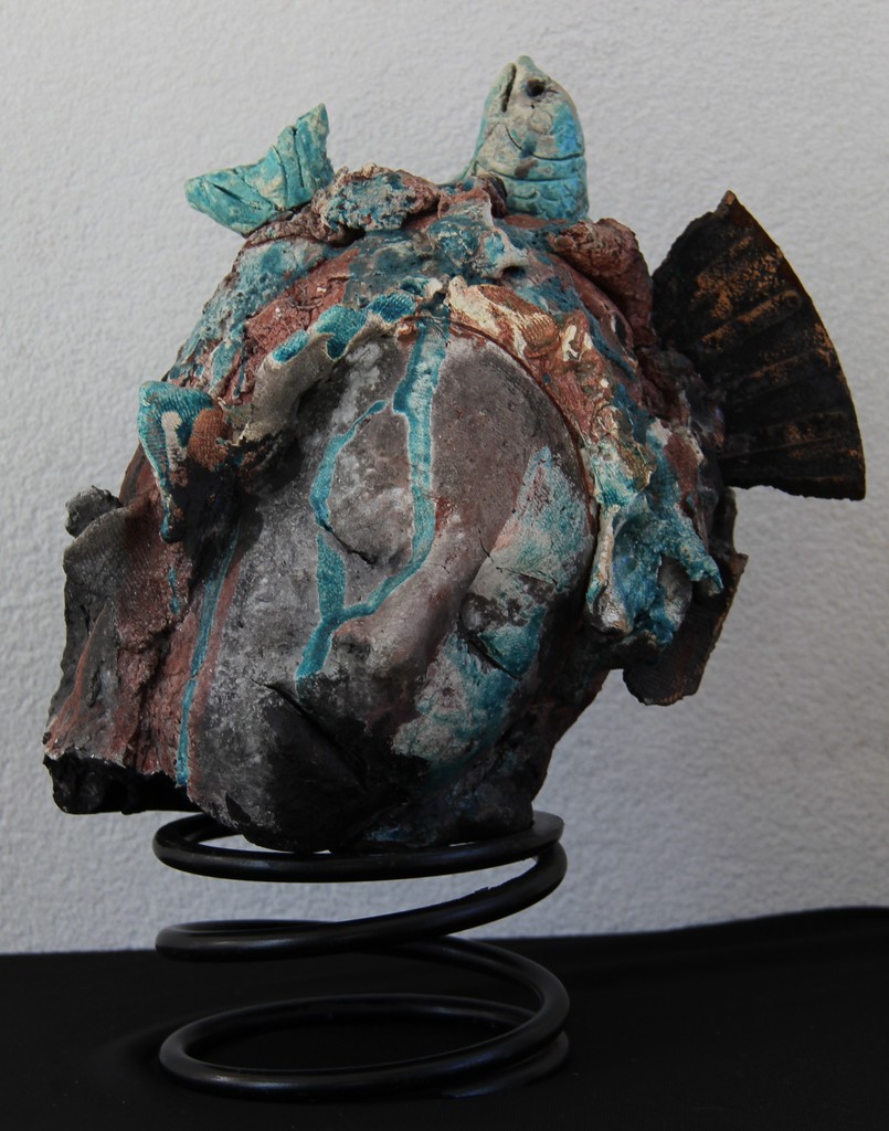 raku gestookt hoofd met vis en ijzeren vin