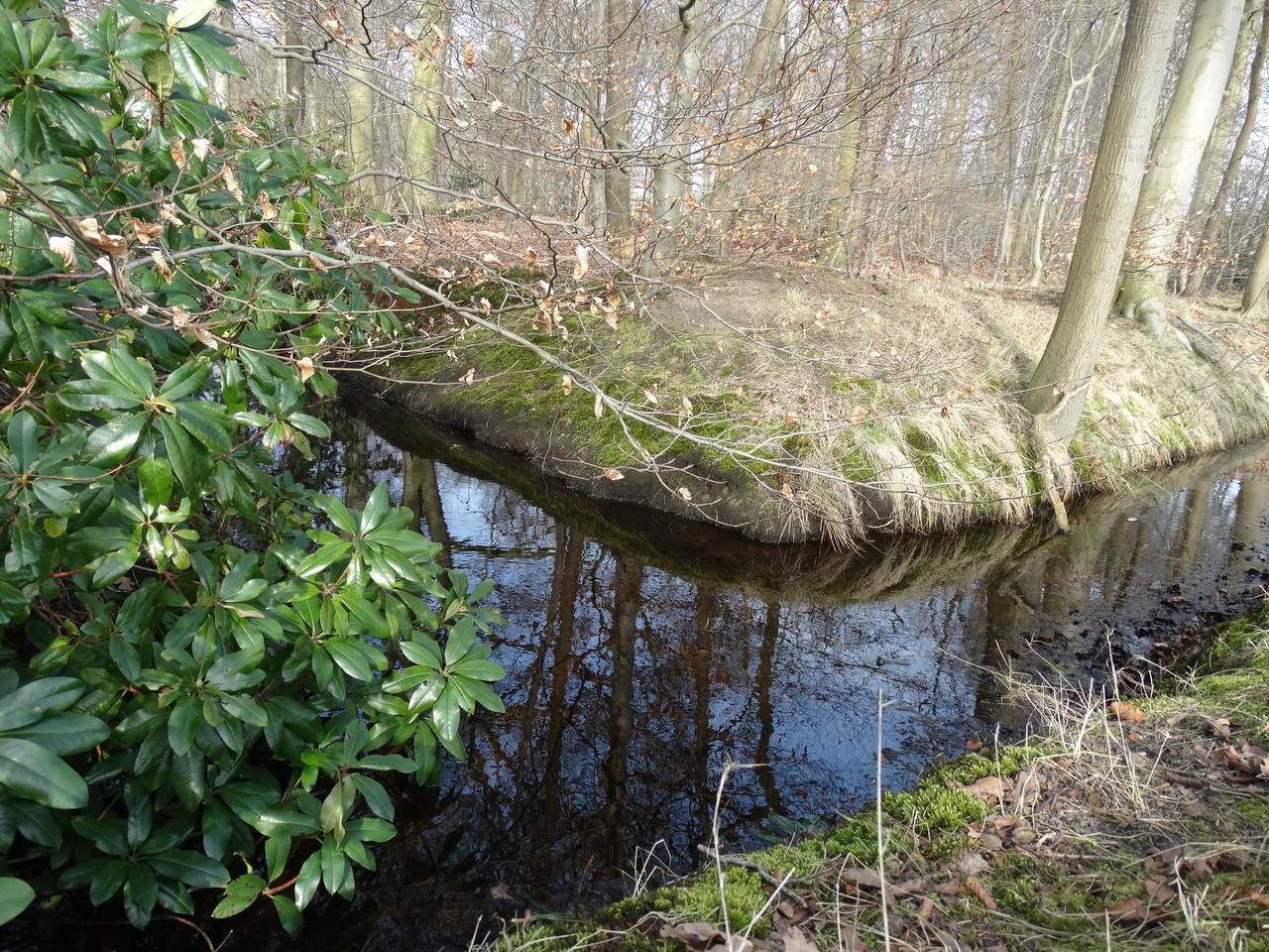 Mooie silhoutten van verschillende bomen te zien in dit watertje begin maart.