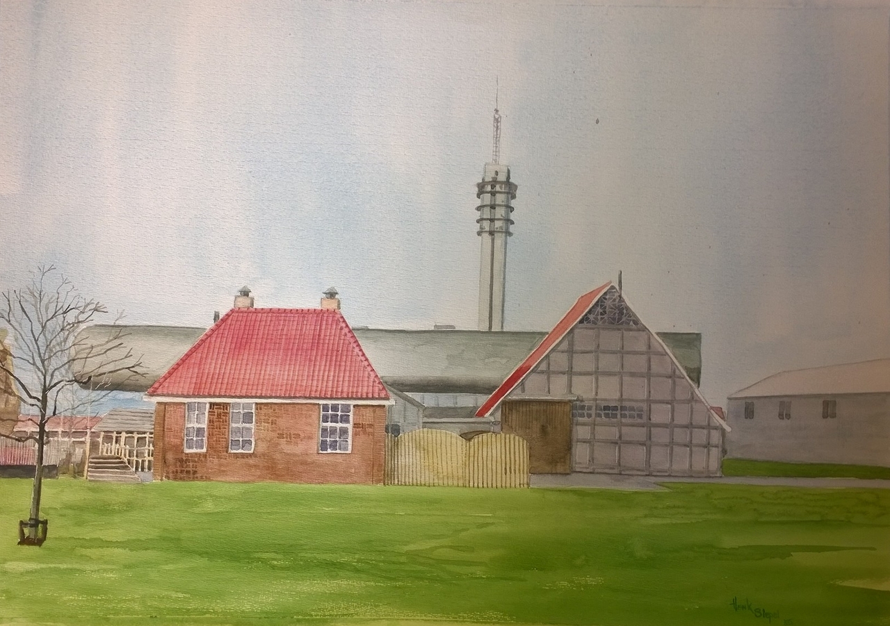 Aquarel Museum Land Nieuw Henk Lelystad Zendmast Siepel Pionierswoning Betonschuur