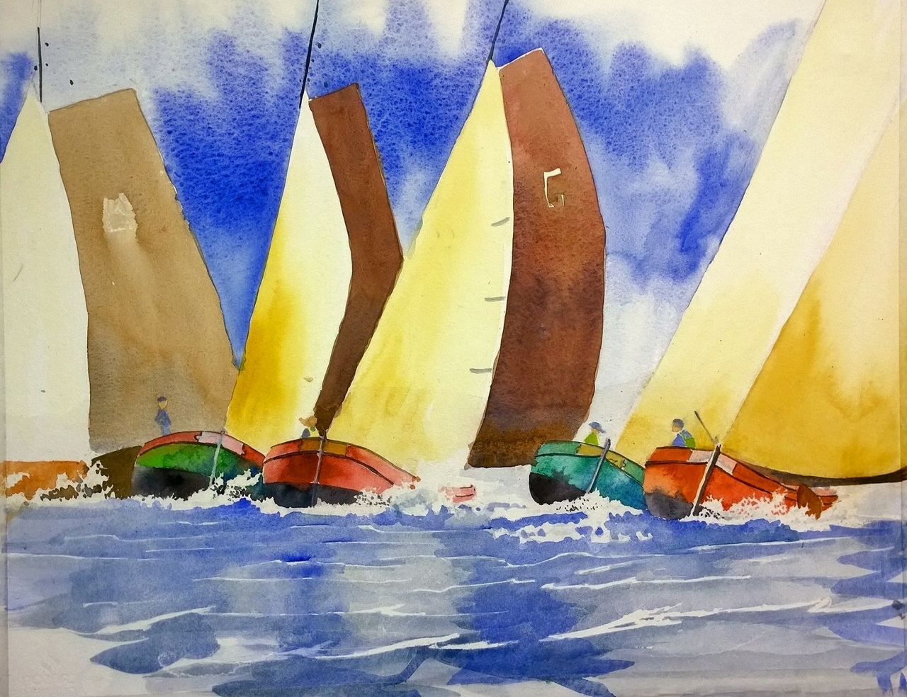 Skutsjesilen Skutjezeilen Tjalk Skutsje Zeilen Pikmeer Grou Aquarel Henk Siepel