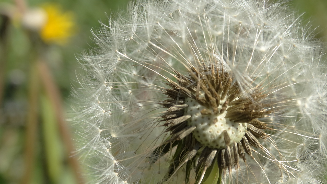 Deze uitgebloeide paardenbloem ziet er zo mooi uit in deze close-up.
