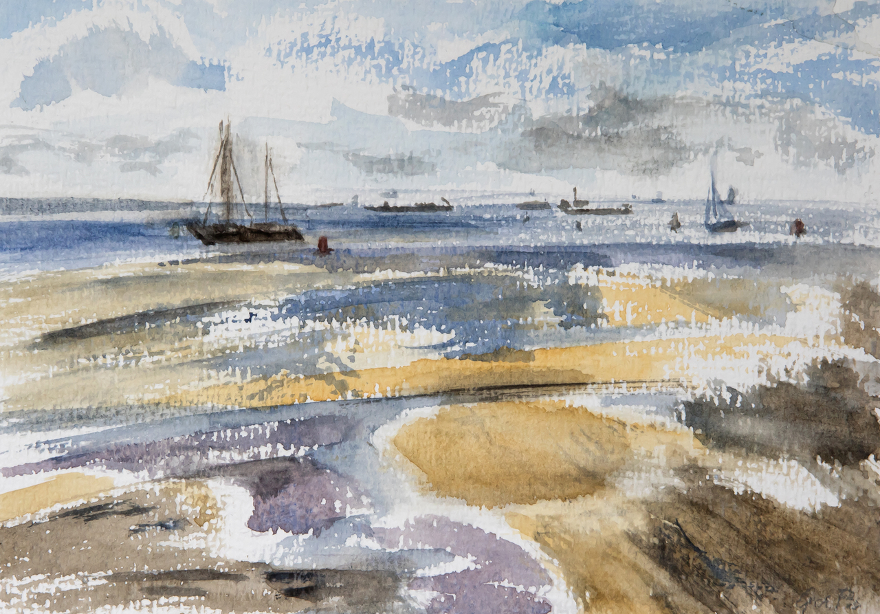 Aquarel Zeegezicht Eiland Waddenzee Terschelling Waddeneiland Noordsvaarder