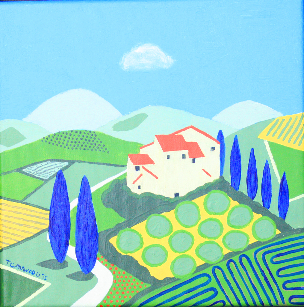 Huis Schilderij Landschap Art Kunst Painting Landscape Hills Boerderij Farm Italie Toscane House Landhuis Heuvels Olijfbomen Tuscany Italy Olives Plantation