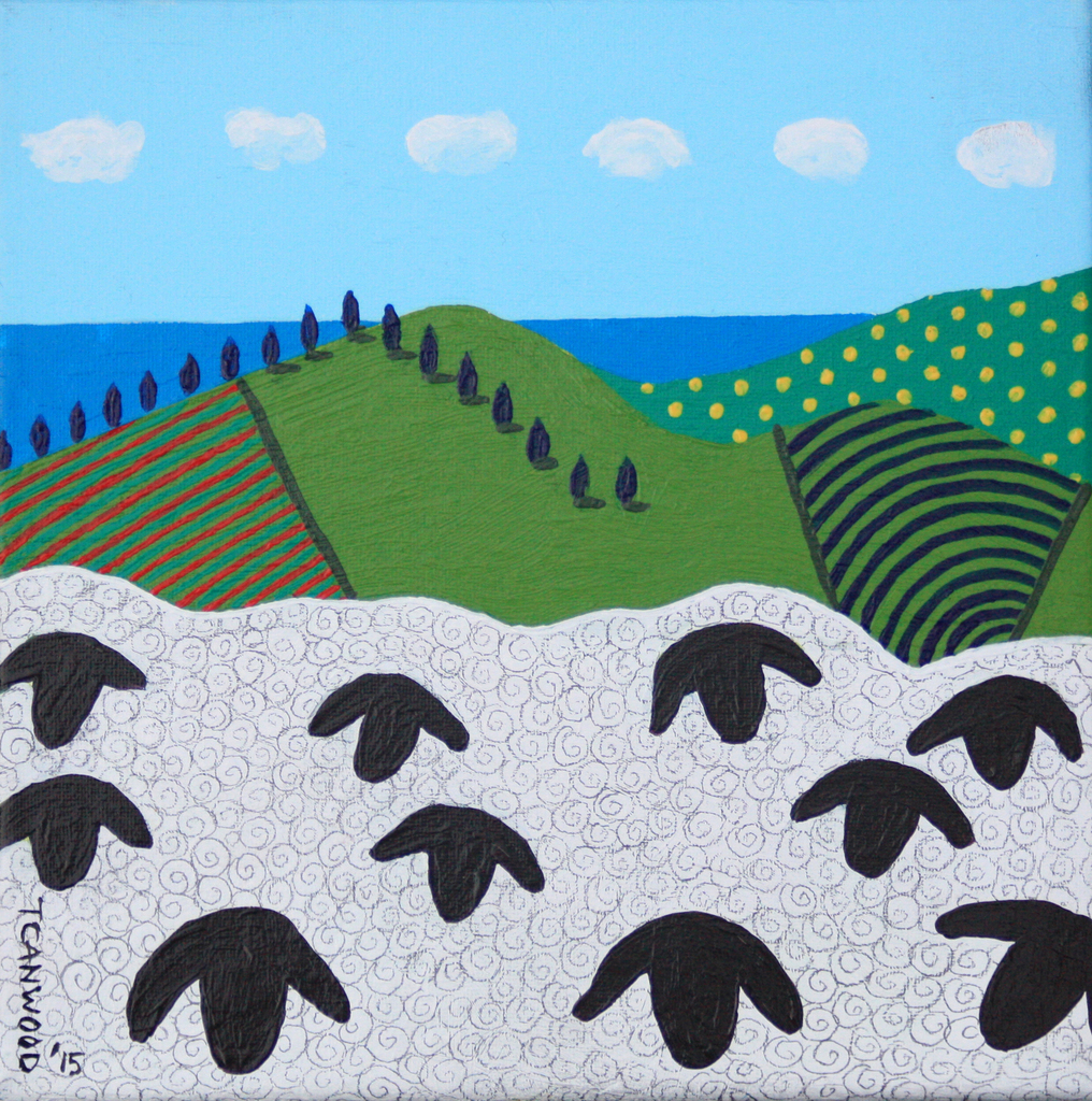 Schilderij Landschap Art Kunst Painting Landscape Hills Schapen Sheep Illustratie Heuvels Kudde Illustrator Illustration Flock