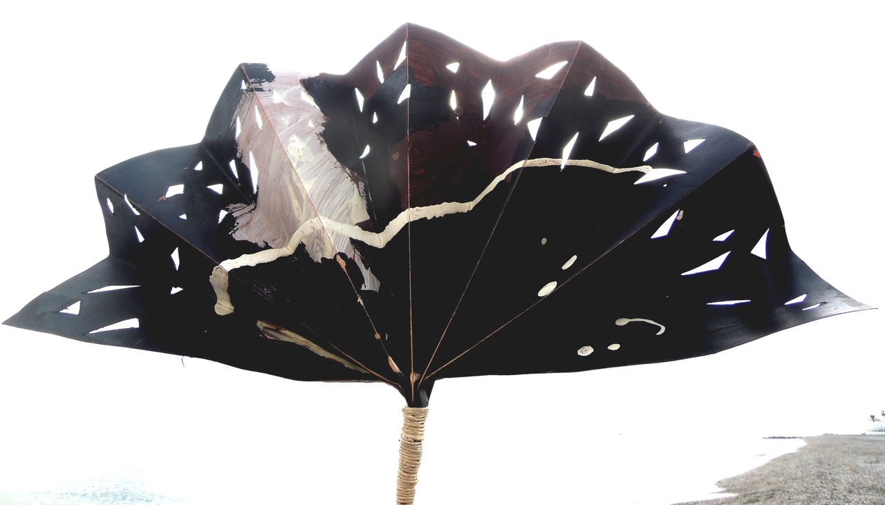 De waaiers : Papier behandeld met lijnolie beschilderd met inkten en acrylverf. Les éventails : Papier traité avec de l'huile de lin, peint avec de l'encre et avec de la peinture acrylique The fans: Paper treated with linseed oil painted with ink and acrylic paint. Los rangos: Papel tratado con aceite de lino pintada con tinta y pintura acrílica.