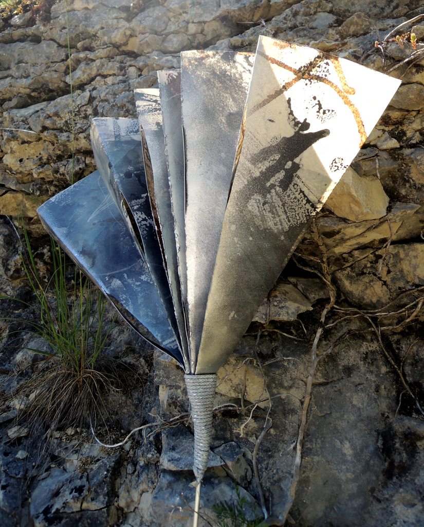 De grote waaiers : Papier behandeld met lijnolie beschilderd met inkten en acrylverf. Les grands éventails : Papier traité avec de l'huile de lin, peint avec de l'encre et avec de la peinture acrylique The big fans: Paper treated with linseed oil painted with ink and acrylic paint. Los gran rangos: Papel tratado con aceite de lino pintada con tinta y pintura acrílica.