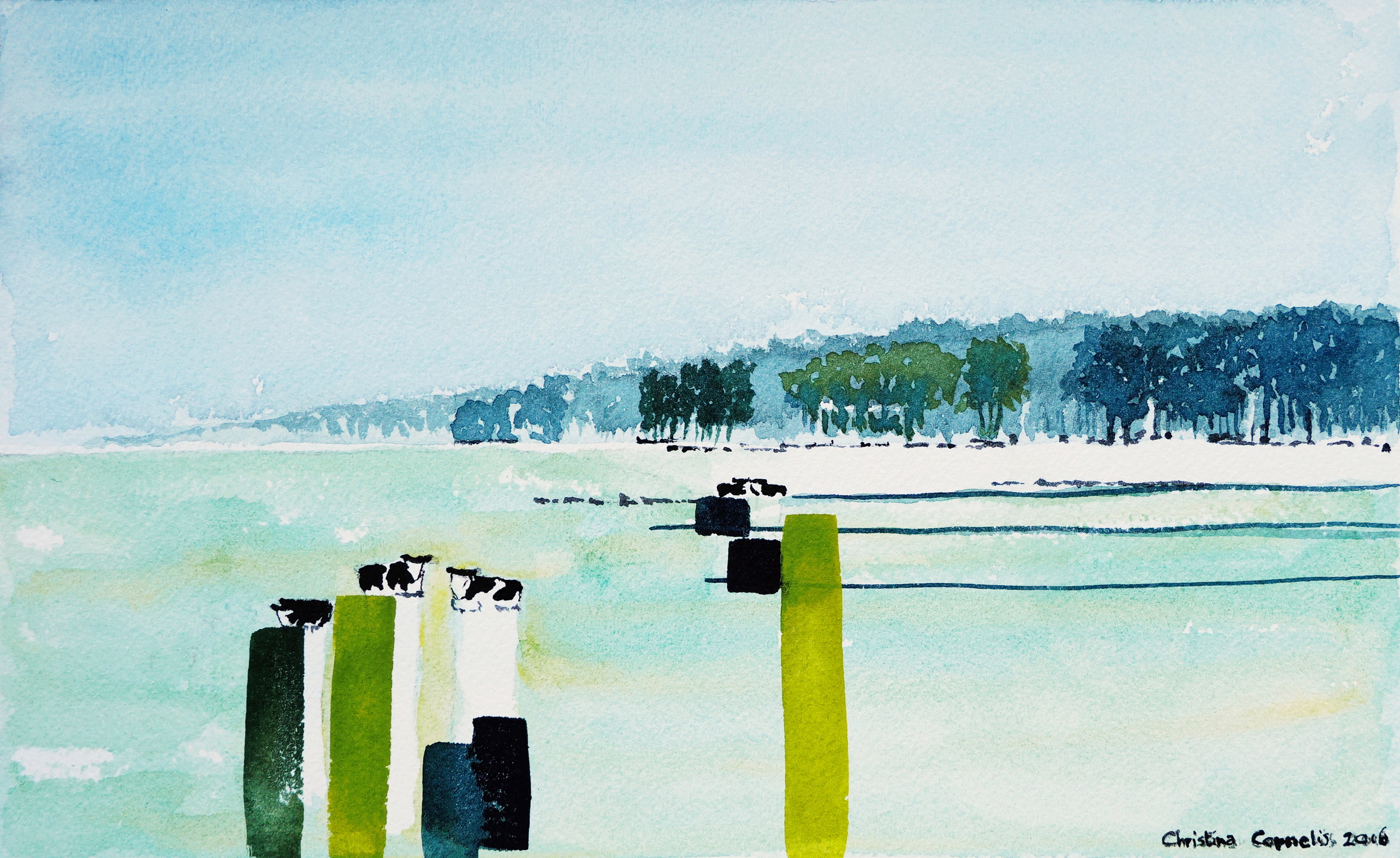 Bloemen Aquarel Abstraherend Koeien Cows Flowers Weide Watercolour Meadow