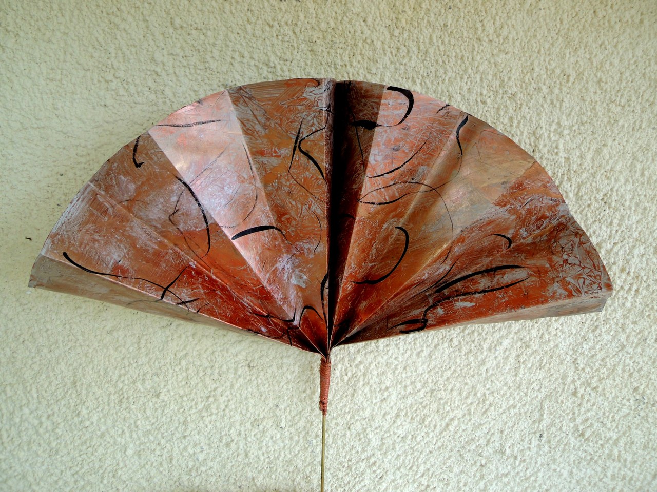 De grote waaiers : Papier behandeld met lijnolie beschilderd met inkten en acrylverf. Tweezijdig. Les grands éventails: Papier traité avec de l'huile de lin, peint avec de l'encre et de la peinture acrylique . . Deux faces The big fans: Paper treated with linseed oil painted with ink and acrylic paint. Double sided Los gran rangos: Papel tratado con aceite de lino pintada con tinta y pintura acrílica. Dúplex