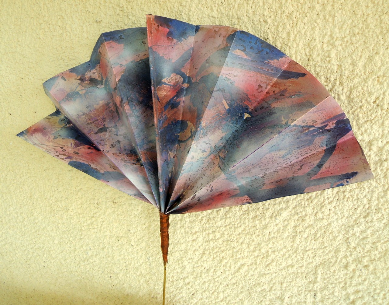 De grote waaiers : Papier behandeld met lijnolie beschilderd met inkten en acrylverf. Tweezijdig. Les grands éventails: Papier traité avec de l'huile de lin, peint avec de l'encre et de la peinture acrylique . . Deux faces The big fans: Paper treated with linseed oil painted with ink and acrylic paint. Double sided Los gran rangos: Papel tratado con aceite de lino pintada con tinta y pintura acrílica. Dúplex