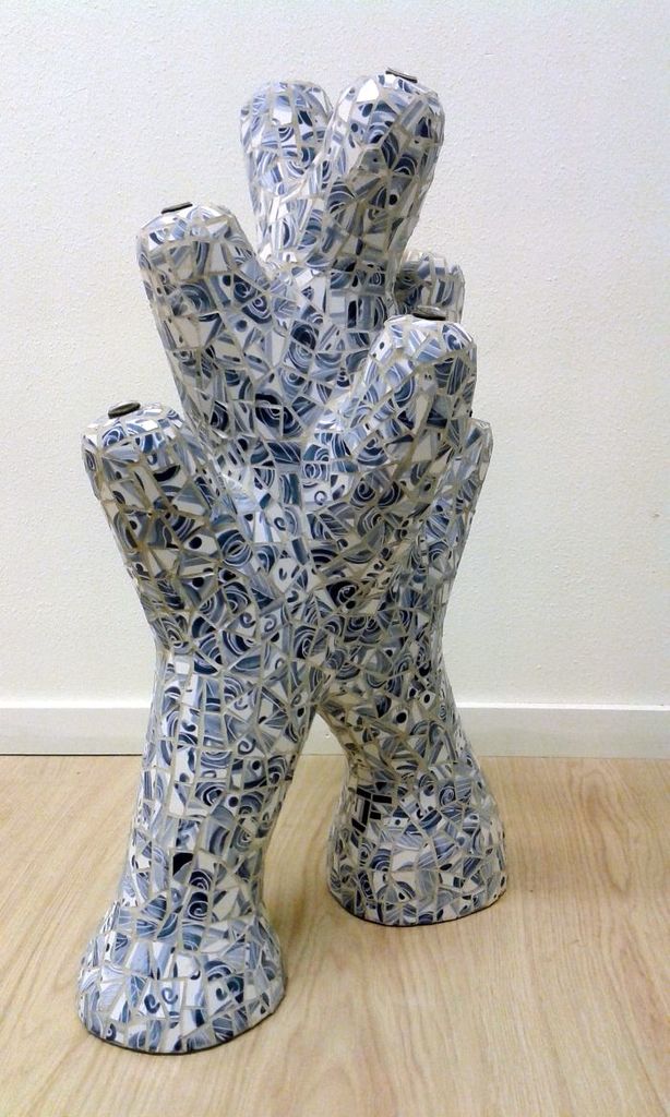 Tulpenvaas mozaiek met zelf gedecoreerde en geglazuurde tegels.