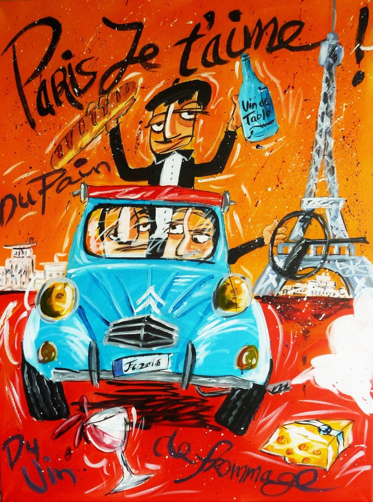Neo popart. 'Paris, je t'aime !' Dit schilderij maakt deel uit van de serie 'Landen'.