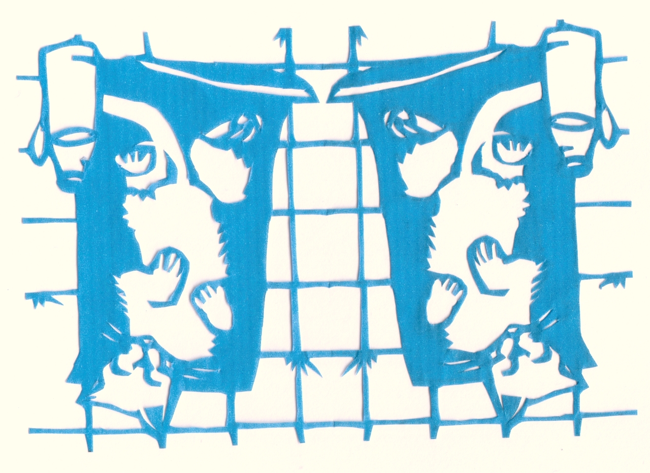 Poes Zon Zomer Knipwerk Melkfles Blauw Papier Knipkunst Paper Cut Scherenschnitt